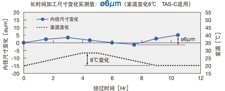 不仅实现了在室温变化时保持尺寸的高稳定性,而且也实现了在机械起动时或再次开始加工时的尺寸的高稳定性。