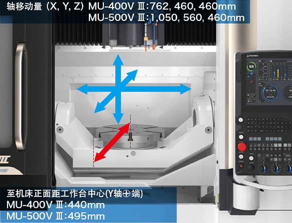 在类似于立式加工中心的紧凑空间内,拥有同类产品中大的加工区域,可对大至ø700mm的大型工件进行高效率5轴加工。 |