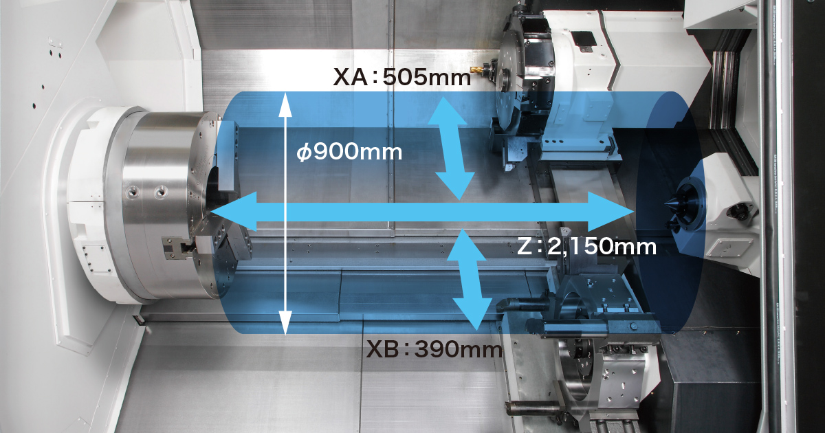 利用Y轴功能集约复杂形状工序 通过双重滑动方式和宽行程的高精度Y轴控制,实现了复杂形状的一次装卡工序集约。 ● Y轴移动量 200mm(+100~-100) ● Y轴快速进给速度 10m/min |