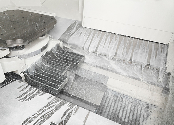 加强对加工室下部的清洁,通过大流量切削液和铰链式排屑 器将积聚的切屑顺畅地排出机床外 ![]() |