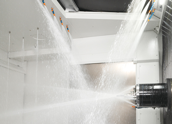 通过喷淋冲洗装置(特殊规格)和来自X/Y轴伸缩钣金上部 的切削液从加工室的上部抑制切屑堆积 ![]() |