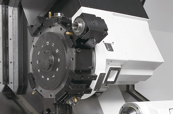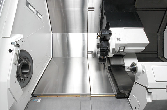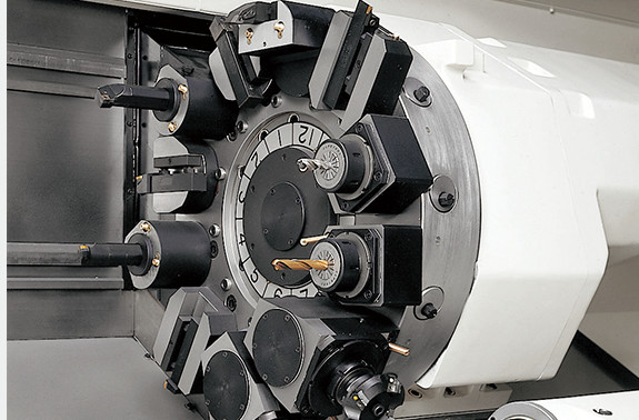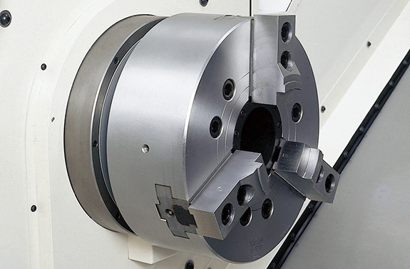 强力重切削也能轻松应对的强力卡紧 ● 采用了大径连接器(LB35Ⅲ:ø354、LB45Ⅲ:ø460)强力油压卡紧系统的刀架 ● 采用减少刀具干涉的大径刀架 (对边LB35Ⅲ:570mm、LB45Ⅲ:700mm) ● 使用了伺服电机的NC刀架 |