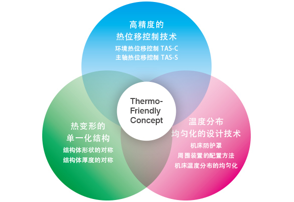 Thermo-Friendly Concept本着“接受温度变化”的独特的构思,使得用户不必采取特殊措施,便能在一般的工厂环境中实现高精度加工。